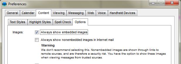 - Added a preference to Content -> Options to always show external images (instead of requiring the user to click the yellow bar):