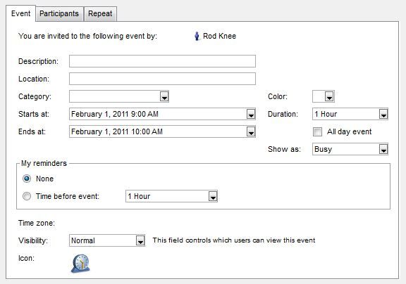 - Time zone, visibility, and icon fields on an event have been moved from the Repeat (formerly known as Advanced) tab to the Event tab: