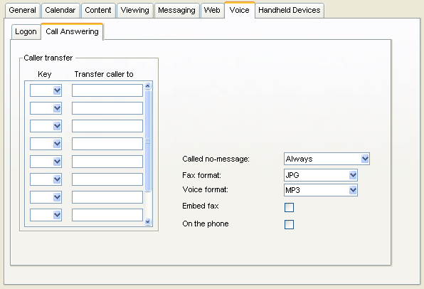 When someone calls your FirstClass Unified Communications number and you do not answer, they are transferred Voice Services. Your preferences and greetings are accessed and, based on these, the call in routed in the appropriate way. Some of these options include automatically transferring the caller to another number, playing a specific customized greeting for the caller, or playing a generic greeting for the caller and allowing the caller to leave a message.