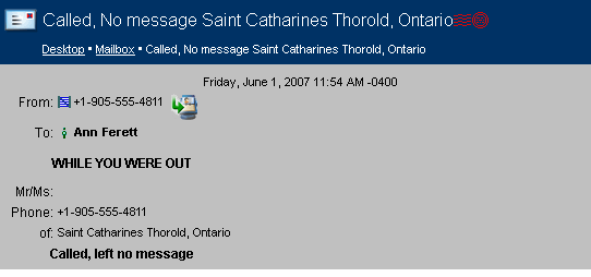 Once these steps have been completed, you can receive messages from all callers to this phone number in your FirstClass Mailbox.